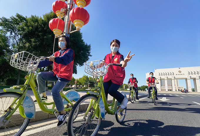 近日,交通運輸部、公安部、國家機關事務管理局、中華全國總工會等聯合印發通知,定于9月份開展2022年綠色出行宣傳月,9月19日至25日開展公交出行宣傳周活動。本次活動以“綠色出行,你我同行”為主題。19日下午,一群身著紅色志愿馬甲的志愿者們從市政廣場新世紀門出發,沿勝利大街一路向南,經過“最美一條街”濰河路,最終從膠州路返回市公交公司,志愿者們通過這一路的騎行方式,做了綠色出行的踐行者和傳播者。