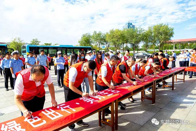 啟動儀式現(xiàn)場,來自市公安局、市交通運輸局、市發(fā)改委、市機(jī)關(guān)事務(wù)局、市總工會、團(tuán)市委、市公交集團(tuán)的60余名干部職工代表共同在“綠色出行·美好生活”橫幅簽下名字,一筆一劃既是承諾,亦是倡導(dǎo),表達(dá)要從自身做起,踐行綠色出行承諾,倡樹綠色低碳行動,營造全社會綠色生活的良好氛圍。