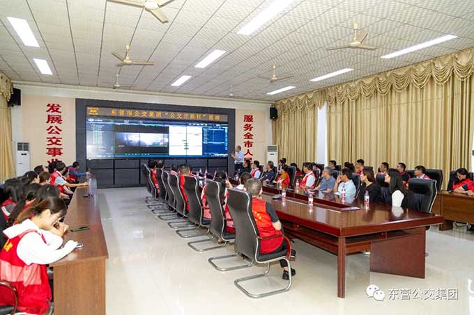 啟動儀式結(jié)束后,大家統(tǒng)一乘公交車來到市公交集團(tuán),參加?xùn)|營市“公交開放日”活動,現(xiàn)場觀摩了市公交智能調(diào)度指揮中心、客服中心以及汽車一隊,詳細(xì)了解了智慧公交系統(tǒng)建設(shè)、公交業(yè)務(wù)辦理、車隊日常運營等情況,真正“零距離”“面對面”接觸公交、感受公交。