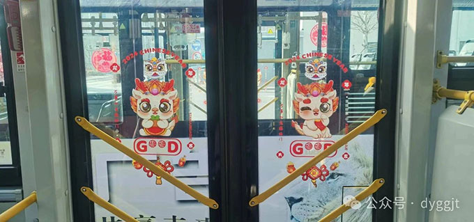 近日,為營(yíng)造更加濃厚的龍年新春氛圍,給市民更好的乘車體驗(yàn),東營(yíng)市公交集團(tuán)在部分公交車車廂掛上了一連串的龍年拉花,還貼上了喜慶的窗花、“龍”形狀的貼畫……打造“溫馨車廂”,讓乘客一進(jìn)車廂,就感受到濃厚的春節(jié)氛圍。
