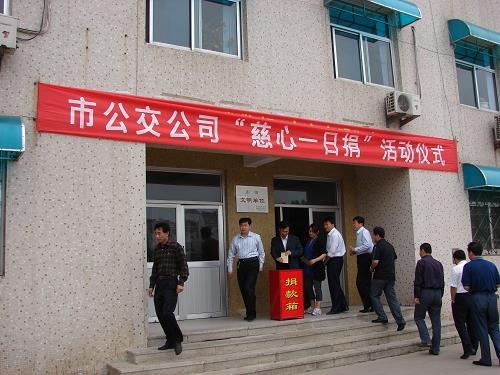 捐一日收入獻一份愛心,送一份溫暖表一份真情。5月22日,市公交公司積極響應(yīng)市政府號召,組織開展了“送溫暖、獻愛心,慈善一日捐”活動。公司近千名干部職工紛紛伸出援助之手,慷慨解囊,踴躍捐款,共計捐款55850元。此筆善款將按照程序統(tǒng)一上交市慈善總會。