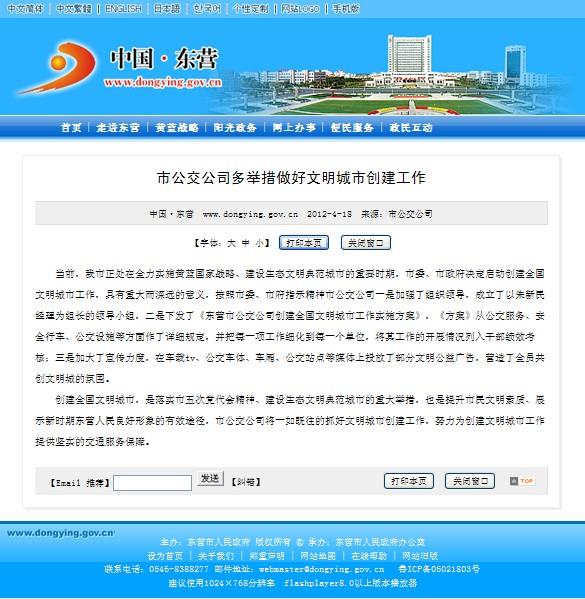 2012年4月27日東營市政府網(wǎng)站報道