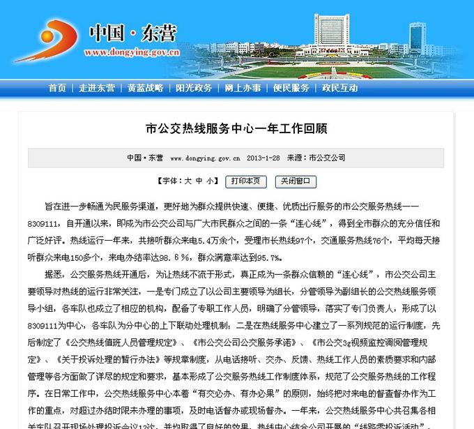 2013年1月28日東營市政府網站報道